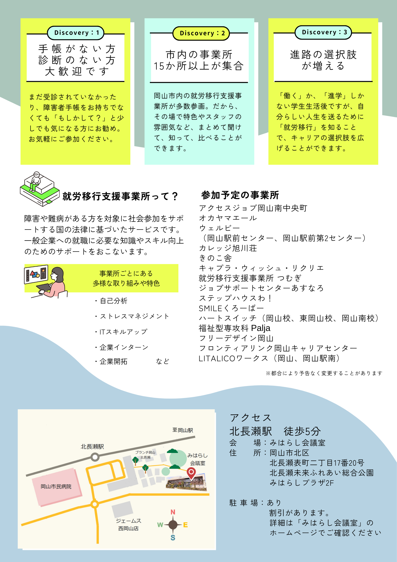場所:みはらし会議室(北長瀬駅徒歩5分)