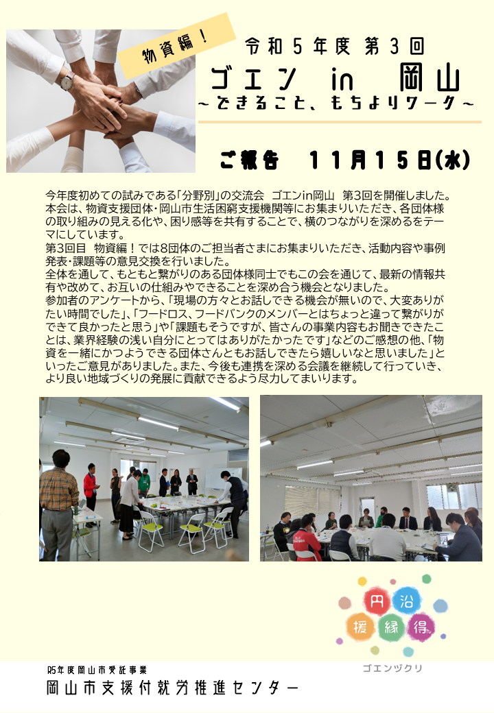 令和5年度 第3回 ゴエン in 岡山 物資編!を開催しました。