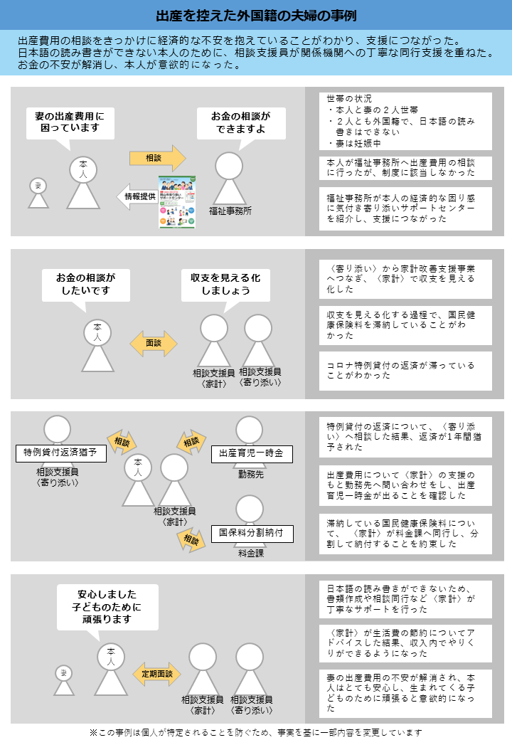 出産を控えた外国籍の夫婦の事例|岡山市支援付就労推進事業は、さまざまなお悩みを抱え、働くことが難しい方向けに定期的なカウンセリングや就労体験・ボランティアへ参加する機会を提供しながら一般就労へ向けた支援を行っています。