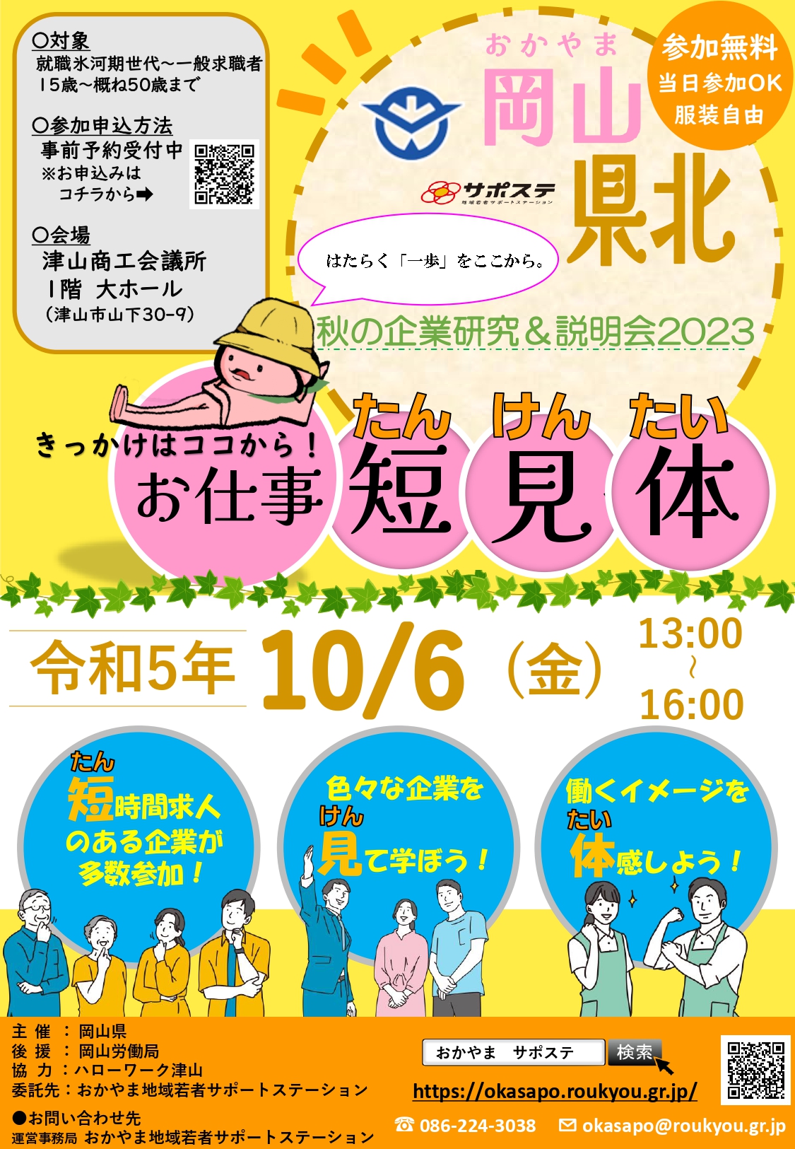 【就職氷河期世代向け】「岡山県北 秋の企業研究&説明会2023」